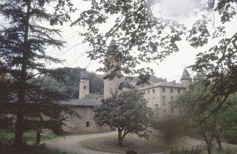 Le domaine, connu dès 1270, est restauré par Jean-Antoine Morand en 1769. En 1794, la propriété s'étend sur 50ha. A partir de 1841, le domaine est revendu par parcelles à différents propriétaires, dont le comte Jean-Baptiste de Chazelles qui fait réaliser par l'architecte Curieux un plan du réseau hydraulique alimentant le bassin. En 1890, le projet d'aménagement du parc est confié à l'architecte paysagiste Luizet. En 1933, la société civile Ozanam de Lyon en devient propriétaire et y installe un collège avec internat. L'ensemble de la propriété est revendue en 1970. Dans les années 1980, le domaine est acquis par la SOGIMM qui y aménage des logements. ££Le domaine se compose d'un corps de logis pentagonal flanqué de trois tours circulaires, d'une chapelle, d'une orangerie et de dépendances, dans un parc boisé et paysager. Les trois tours marquent les angles du clos du Haut Moyen-Age. Trois phases principales d'édification se dégagent. Une première aux 14e-15e siècles avec la maison forte, les tours, un escalier à vis. Une seconde de 1769 à 1774 avec le réaménagement du château et l'aménagement des jardins. Enfin, une troisième phase en 1885-1890 correspondant à l'intervention de l'architecte Curieux, avec modification des communs, réalisation du salon marocain, de la chapelle et de l'orangerie, et réaménagement du parc. Les pièces ont conservé leur décor : parquets Versailles, cheminées du 19e, lambris, portes du 15e siècle, sol en mosaïque, boiseries peintes, toile marouflée, vitrail de style préraphaélite...
