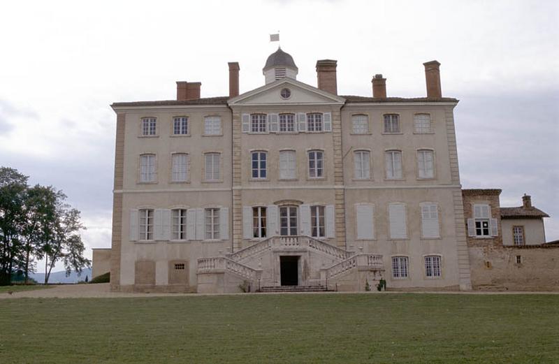 Façades et toitures ; escalier intérieur ; grand salon dit salon doré avec son décor (cad. O 140) : inscription par arrêté du 28 juin 1974 - A l'intérieur du château, au rez-de-chaussée : la salle à manger et le salon est ; chapelle ; cour ouest, y compris les cinq portails en ferronnerie ; façades et toitures de l'ensemble des bâtiments des communs ; les deux pavillons dits des Tournelles ; parc agricole et paysager, créé par le Comte de Choulot, y compris les allées, les plans d'eau, les bosquets, le potager (cad. Saint-Georges-de-Reneins O 138 à 140, 190 à 194, 197 à 199, 201 à 203, 227, 228, 295 ; L 530, 498 ; Arnas A 2 à 4, 6, 8 à 10, 1039 à 1041) : inscription par arrêté du 29 janvier 1996
