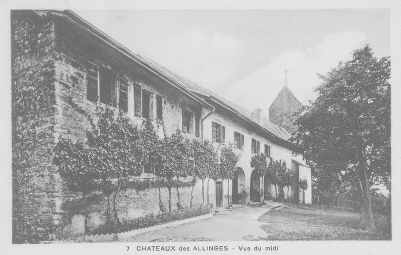 Edifiés sur une crête en forme de croissant, située sur la rive sud du Lac Léman, les deux châteaux des Allinges présentent la caractéristique d'être installés face à face et séparés par une faible distance. Le lignage d'Allinges apparait dans la documentation écrite à la fin du 10ème siècle. Cependant, les deux châteaux ne sont mentionnés ensemble qu'au début du 13ème siècle, bien après leur construction. A cette période, Château-Neuf se trouve en possession de la maison de Savoie, tandis que Château-Vieux appartient aux Sires de Faucigny. A la suite du conflit delphino-savoyard qui perdura de la seconde moitié du 13ème siècle jusqu'au 14ème siècle, Château-Vieux est peu à peu abandonné et seul Château-Neuf reste en usage. Château-Neuf sera finalement démantelé en 1703 par le duc de Savoie dans la crainte de voir cette place forte tomber aux mains des Français. La chapelle de Château-Neuf fera l'objet d'une restauration en 1836 et entre 1842 et 1844, les missionnaires de Saint-François-de-Sales construisirent une habitation à côté de la chapelle, vraisemblablement sur les ruines des anciens bâtiments du château.