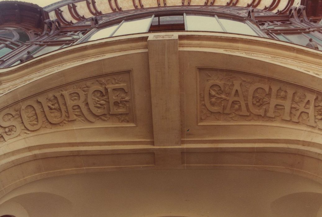 L'ancienne buvette de la source Cachat est construite pour la Société des eaux minérales d'Evian en 1903 par l'architecte Jean Hébrard. La partie supérieure de l'édifice est couverte en bois avec de grandes baies vitrées, mais ce volume a été cloisonné pour une utilisation comme bureaux. L'une des deux ailes en retour qui abritaient des promenoirs a également été détruite.