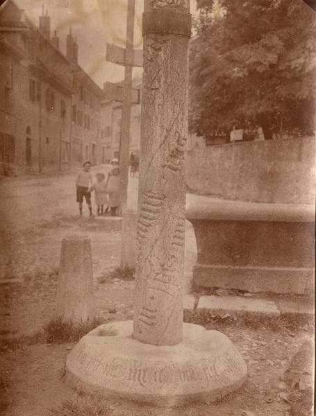 Croix de chemin en pierre provenant de l'ancien cimetiere de Farlon