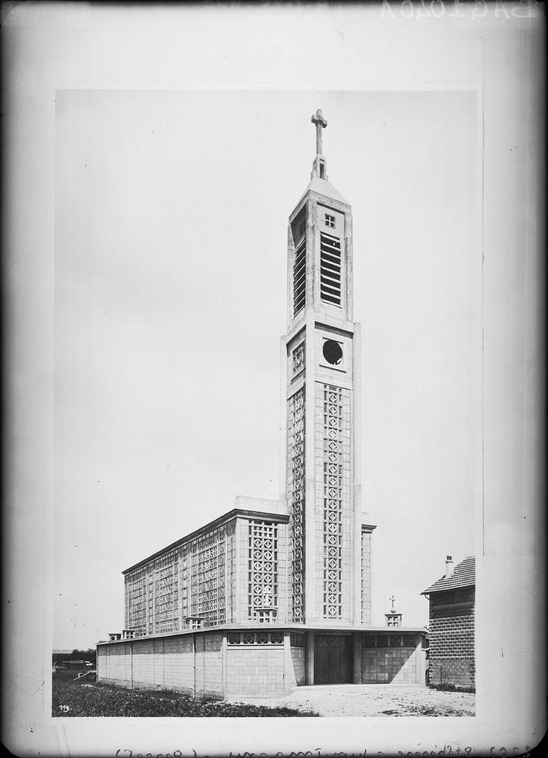 Chapelle construite par les frères Auguste et Gustave Perret de 1926 à 1927 et dédiée à sainte Thérèse de Lisieux (qui venait d'être canonisée). Edifiée économiquement en béton armé, à l'instar de l'église du Raincy (voir notice Mérimée PA00079948) , l'église, dont le plan est de type basilical, est dotée d'un clocher haut de 32 mètres, plaqué sur la façade d'entrée. Le chevet est orné d'un décor peint figurant le Christ crucifié avec sainte Thérèse au pied de la croix. Ce décor est l'oeuvre de Valentine Reyre, l'une des initiatrices des Ateliers d'Art Sacré, et l'auteur des quatorze stations du chemin de croix, réalisées dix ans après l'achèvement de la chapelle.