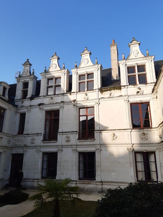 L'existence de cette maison est attestée dès le 15e siècle. D'importants travaux de construction et de remaniements sont entrepris au 19e siècle. L'immeuble comprend un corps principal et deux ailes en retour donnant, à l'est, sur un jardin. A l'ouest se trouvent une tour du 16e siècle et un bâtiment du 19e donnant sur la rue. Les deux ailes sont plus basses que le bâtiment principal. Les façades donnant sur jardin présentent un riche décor sculpté du début de la Renaissance. Chaque façade est divisée verticalement par des pilastres plats renfermant soit des cercles, soit des losanges, terminés par des chapiteaux sculptés. Des bandeaux moulurés scandent horizontalement les façades. Entre ces bandeaux sont incluses des têtes sculptées : sybilles, prophètes et guerriers. La tour côté ouest reprend le même décor. L'aile sud a subi des transformations au 19e siècle.