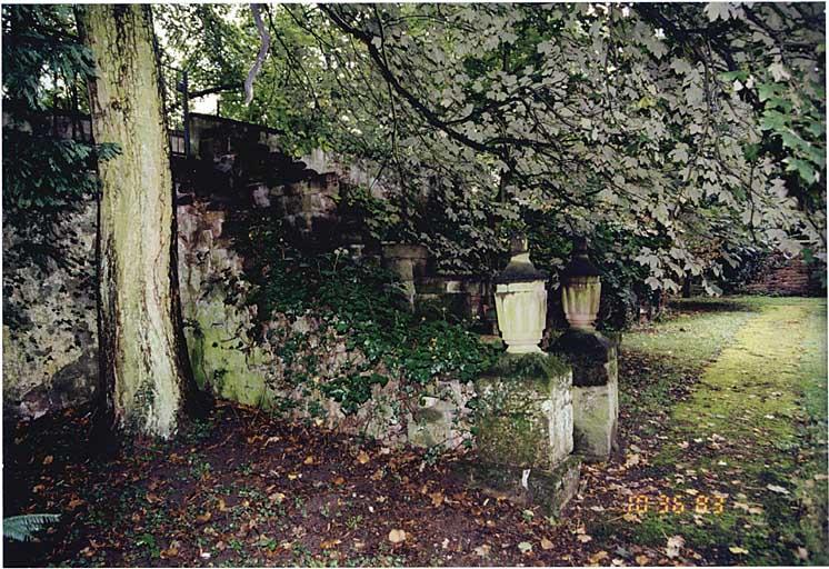 Façades et toiture du bâtiment principal (à l'exclusion de l'adjonction sud) , escalier d'honneur et grand salon central au premier étage ; façades et toiture des deux dépendances côté jardin, y compris la pierre tombale du 18e siècle en remploi ; parc attenant, avec l'escalier d'accès à la promenade-belvédère sur le rempart, et sa clôture (cad. 28 82) : inscription par arrêté du 16 août 1994