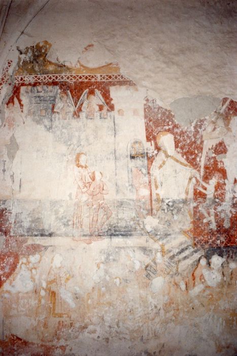 Edifice d'origine romane à nef unique avec un choeur composé d'une travée droite et d'une abside, auquel fut ajoutée du côté sud, à la fin du 15e siècle, une chapelle. Un porche postérieur abrite le portail occidental que surmonte un clocher-mur. Des peintures murales ornent la chapelle. Sur le mur oriental, le registre inférieur est occupé sur sa longueur par une représentation de la Cène qui est associée à la position de l'autel. Le mur ouest est occupé par un Jugement dernier.