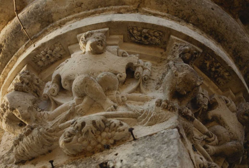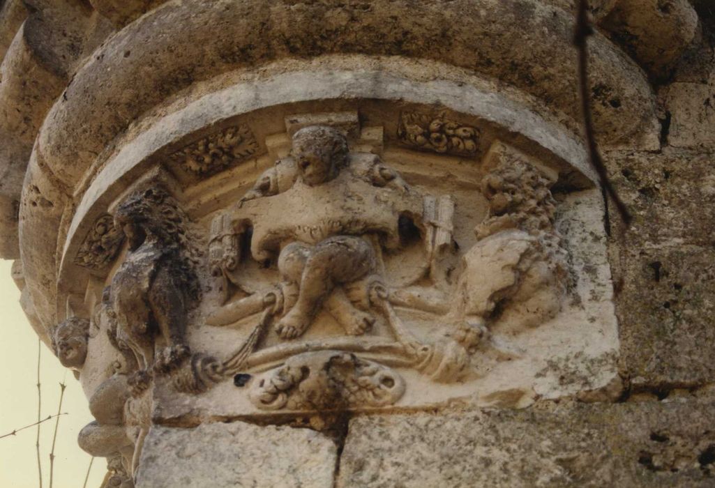 Ce vestige était le portail de l'ancienne prestrière du chapitre cathédral de Chartres, dont l'ensemble de l'édifice a presque entièrement disparu. La partie conservée comprend le piedroit de l'arc et l'amorce du voûtement (en pierre de taille et blocage de moellons) , un mur perpendiculaire de stabilisation (en moellons) , et une échauguette circulaire en surlplomb sur l'angle (en briques). Le cul de lampe est sculpté de lions et de putti en pierre. L'artiste a parfaitement réussi la difficile jonction entre un soubassement rectangulaire et une construction circulaire. Il a équilibré sa composition de part et d'autre de l'axe central.