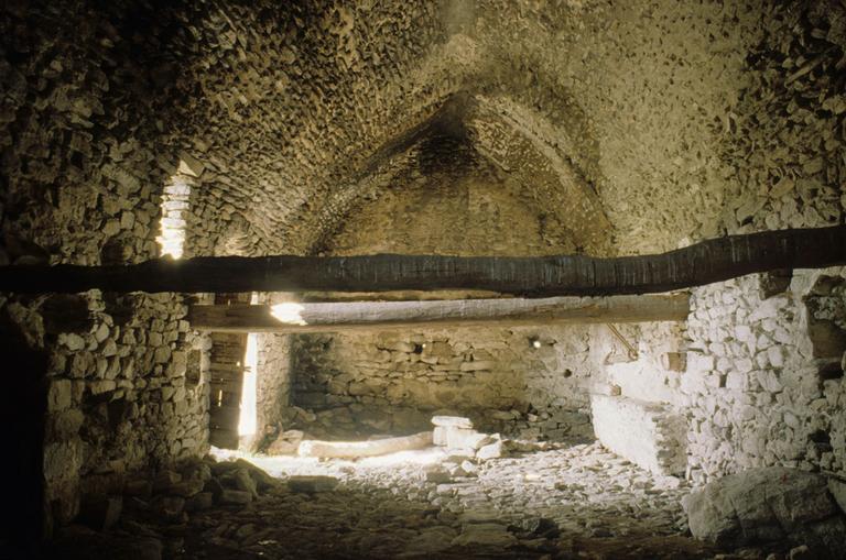 Chapelle du 13e siècle, enclos du 14e siècle. La chapelle ferme l'angle nord-est d'une clôture en pierre munie d'une porte fortifiée à l'est. Il s'agit d'une chapelle orientée, à nef unique et chevet semi-circulaire légèrement plus étroit. La nef semble avoir été rallongée à l'ouest. L'entrée au sud a été très remaniée. La porte d'origine, probablement en plein cintre, a disparu mais son tracé reste visible. La nef est couverte d'une voûte en berceau brisé qui se prolonge au-dessus de la travée de choeur. L'abside est voûtée en cul de four. L'enclos est constitué d'un mur de faible hauteur sur lequel apparaissent des assises en opus spicatum ainsi que quelques archères. Sur le front est, demeurent les vestiges assez imposants d'une porte autrefois constituée d'un passage, certainement couvert, entre deux arcs. Seul l'arc intra-muros est conservé.