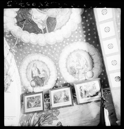 Eglise du 12e siècle, se terminant par une abside couverte en cul de four et s'ouvrant par un portail Renaissance. La nef est ornée d'un décor peint du 15e siècle représentant, sur fond étoilé, Dieu le Père entouré des quatre Evangélistes.