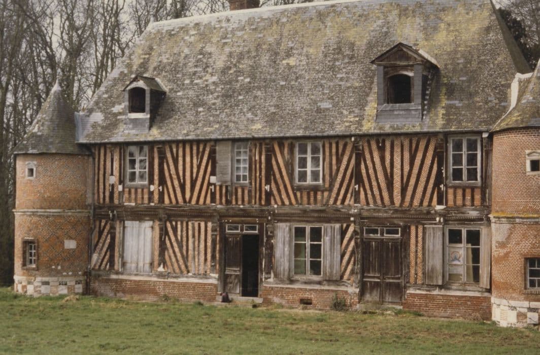 Architecture alliant maçonnerie de brique et pan de bois. Cheminées à décor Renaissance.