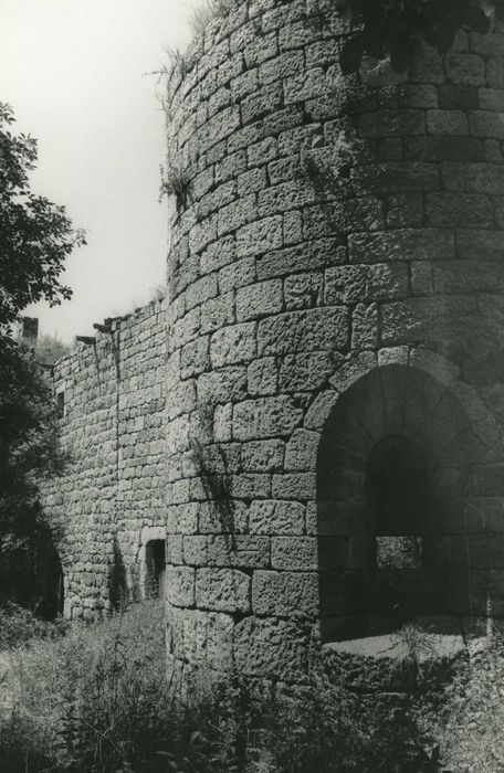 Vestiges féodaux des 14e et 15e siècles. A la Révolution, le château est vendu en l'an III. Le général Colomb veut en faire une base pour lutter contre les contre-révolutionnaires très actifs dans la région, mais l'édifice est tellement délabré que le commandant de la garnison doit demander le retrait des troupes. Au 19e siècle, la dégradation se poursuit et le château, partiellement reconstruit, sert d'exploitation agricole. £L'édifice apparaît constitué de deux corps de logis parallèles reliés par une courtine qui délimite une cour intérieure. Chaque corps de logis est flanqué d'une grosse tour sur son angle Est. Sur l'angle nord-ouest a été ajouté ultérieurement un autre corps de bâtiment approximativement carré. Au rez-de-chaussée de la tour nord-est est aménagée une chapelle voûtée d'ogive avec clef de voûte.