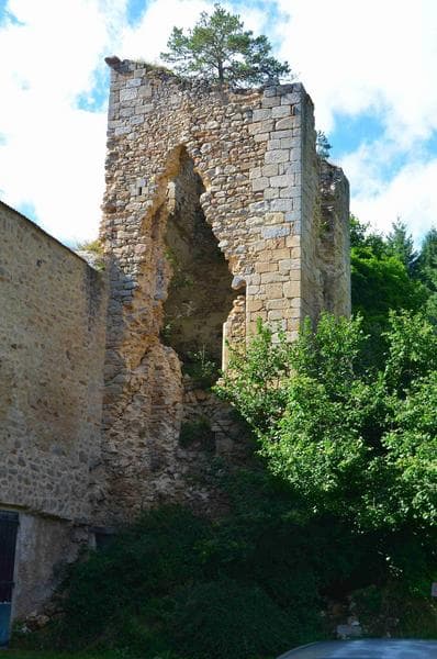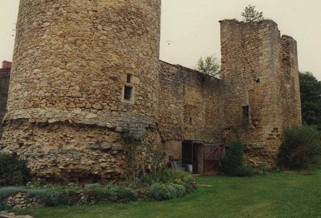 Réalisation architecturale du 13e siècle dans l'esprit des constructions de Philippe Auguste. Construit entre 1240 et 1250, le château est remanié au 15e siècle. Transformation des archères ; modification de la tour sud-est ; remaniement des logis et de la tour carrée. Au 17e siècle, percement d'une porte ornée de pilastres au deuxième niveau de la tour Est. En 1860, le château est incendié. Le plan est constitué d'un rectangle avec une tour circulaire à chaque angle. A l'est et à l'ouest, en milieu de courtine, présence d'une tour carrée. Jusqu'à la fin du 19e siècle, la façade sud conserve un portail d'entrée aménagé dans une tour carrée. Des courtines s'élèvent au troisième niveaux des tours. La rigueur géométrique du plan, la qualité des aménagements défensifs et résidentiels font de ce château un élément important de l'histoire de l'architecture militaire auvergnat.