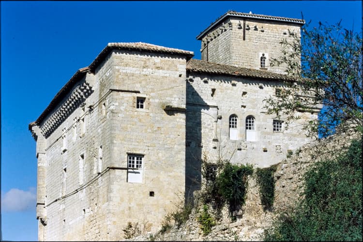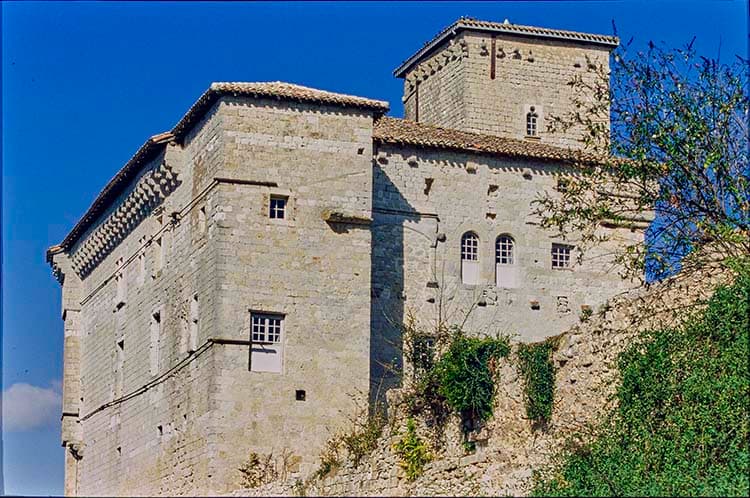 Château appartenant à la chaîne de la défense militaire de la Gascogne, qui commandait sans doute une des entrées du village. Un castrum est mentionné dès 1270. Le corps de logis est flanqué de deux tours opposées. L'intérieur est partagé par un mur de refend dans le sens de la longueur. Le second niveau assurait la défense. Le troisième niveau constituait l'étage noble, abritant le logement du seigneur. Le quatrième niveau était défensif, avec chemin de ronde, crénelage, mâchicoulis et échauguettes. Le château était protégé par un mur d'enceinte.
