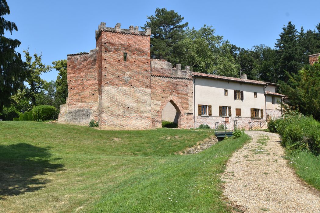 Les premiers documents concernant le site fortifié remontent au 14e siècle, mais le site pourrait avoir des origines gallo-romaines. Site de forme ovale comprenant une butte circulaire, une plate-forme accolée et un fossé. Au-delà du fossé, une vaste plate-forme entourée d'une enceinte de brique flanquée de plusieurs tours, et comportant plusieurs bâtiments (église, maison rurale à galerie, bâtiment en pisé). Autour de l'église se trouvait le cimetière fonctionnel jusqu'à la fin du 19e siècle.