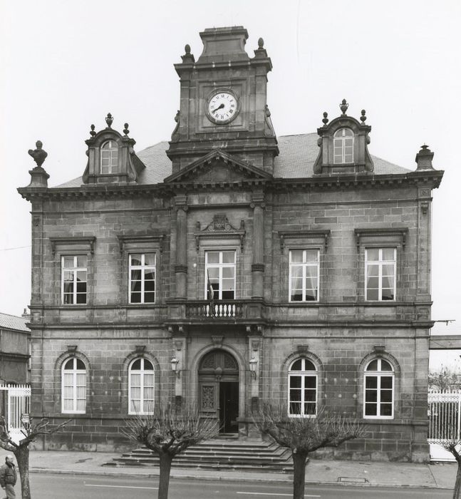Campagne d'aménagement urbain sous le Second Empire : construction des fontaines (1857-1858) , de l'hôtel de ville (édifice élevé de 1857 à 1861 par l'architecte clermontois Taché).£Cet édifice tranche par la couleur noire de ses façades en pierre de Volvic. La composition symétrique du bâtiment principal encadré de deux annexes de part et d'autre, est assez caractéristique des préoccupations de la fin de l'époque néo-classique. Décor de style néo-Renaissance.