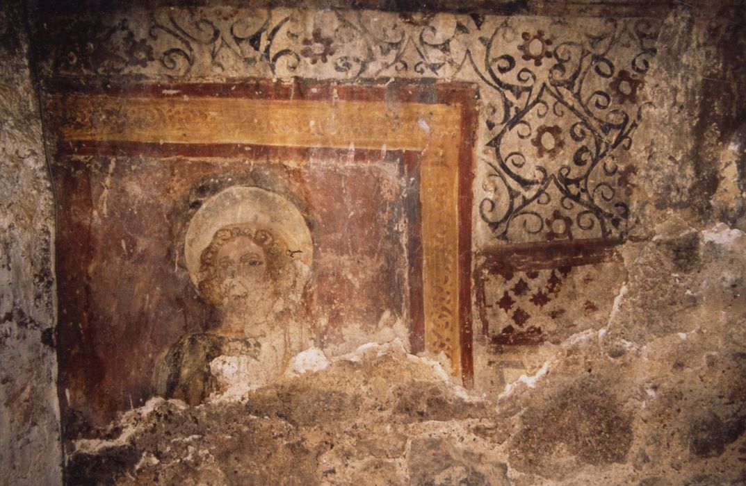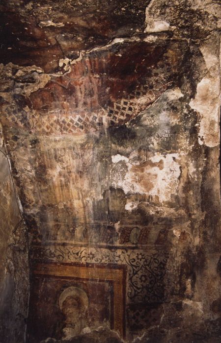 Chapelle construite à la fin du 13e siècle. Dès la fin du 15e siècle, elle ne sert plus qu'aux offices funéraires et à la messe de célébration du saint tutélaire. Au 18e siècle, elle tombe en ruines, puis subit des réaffectations successives. Fresques de la fin du 15e ou du début du 16e siècle sur l'arc triomphal et la voûte.