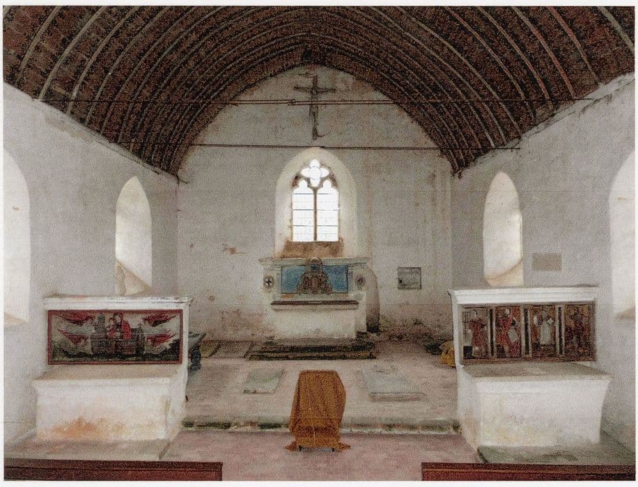 Fondation du prieuré en 1209. A l'extinction du prieuré-cure, la chapelle devient chapelle seigneuriale. Lambris peints du 16e siècle.