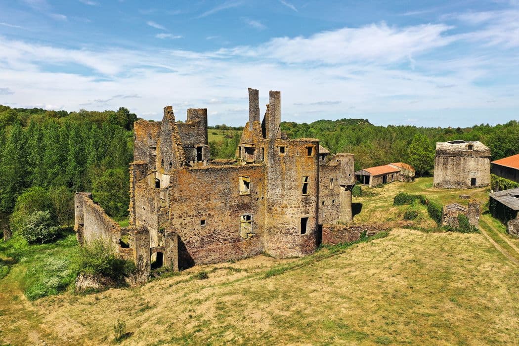 Château signalé au 12e siècle, fortifié en 1386. L'édifice actuel date de la fin du 15e ou du début du 16e siècle. Les bâtiments de communs sont accompagnés d'un pigeonnier de plan circulaire, orné des armes des Vignerot. L'église abrite les gisants en marbre de René de Vignerot et de son épouse Françoise du Plessis de Richelieu, soeur du Cardinal. Exécutés vers 1625 et attribués à Michel II Bourdin. Les parties hautes de la chapelle sont défensives.