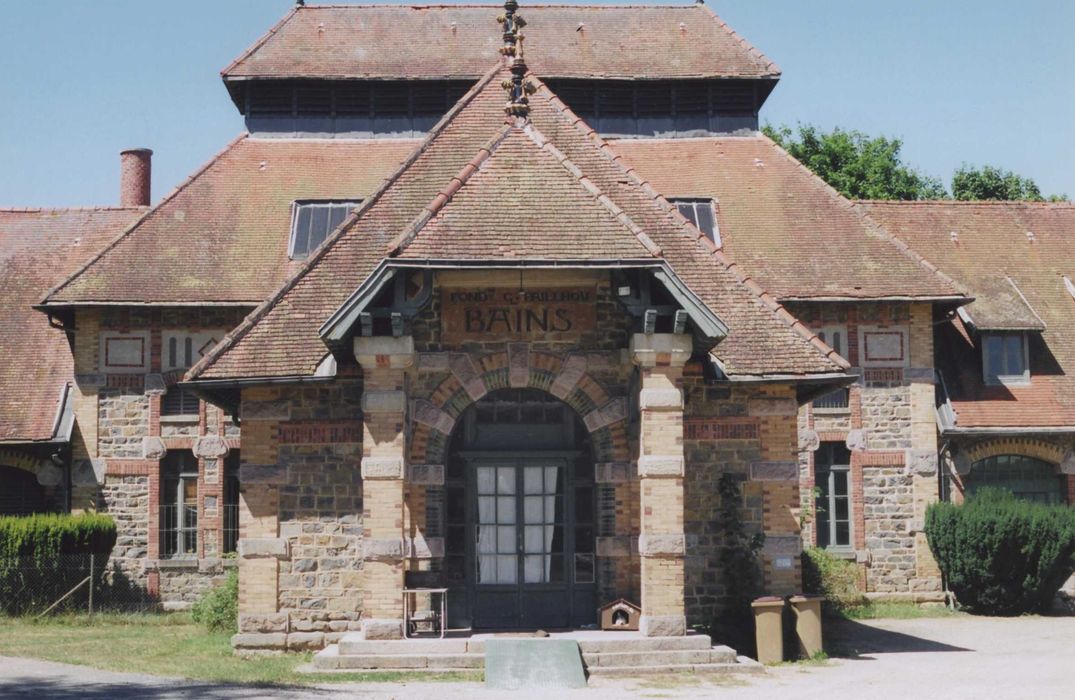 Ensemble dû au vicomte Paillhou, et conçu par l'architecte Jean Hardion, entre 1909 et 1913, dans la lignée des constructions philanthropiques du 19e siècle, regroupant les fonctions d'hôpital et d'orphelinat. Sa conception architecturale prend en compte les progrès de la médecine et les principes hygiénistes alliés à un environnement confortable. Le style éclectique utilisé évoque le style anglo-normand et fait appel à l'utilisation de matériaux variés et colorés tels que la brique polychrome et le grès émaillé. Plusieurs bâtiments indépendants sont reliés par une galerie couverte et disposés autour d'une cour d'honneur : l'hôpital, le bâtiment des bains, l'orphelinat des filles, et celui des garçons. A l'intérieur, l'intérêt pour l'hygiène se matérialise par la ventilation, des espaces destinés au lavage des personnes et du linge, le chauffage par chaudière centrale, le séchage du linge par un dispositif à vapeur
