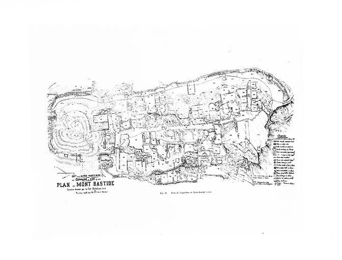 Oppidum occupé du 5e au 1er siècle avant notre ère et comportant des maisons en terrasse, une triple enceinte et des pierres levées.