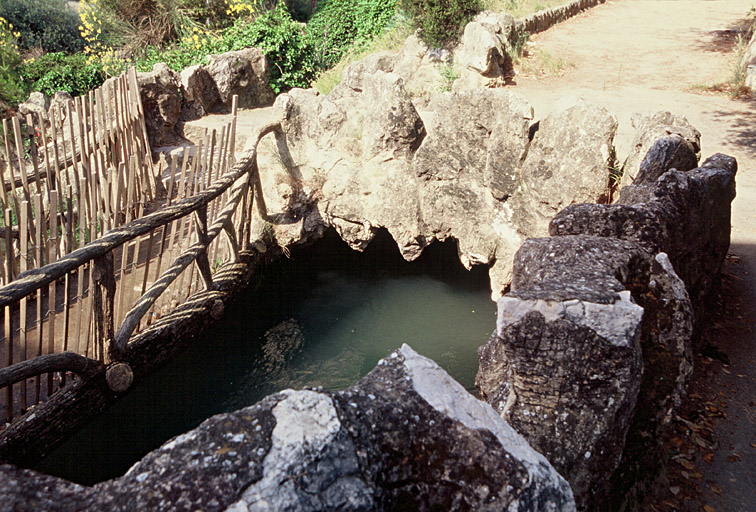 Les parties suivantes de la cascade : totalité des parties en eau à ciel ouvert de l'arrivée du canal, avec les bassins et les chutes ; cheminements, escaliers et accessoires en rocaille de ciment armé aux abords immédiats ; grottes du soubassement, façades et toiture de la maison de garde (cad. EM 18) : inscription par arrêté du 28 novembre 2001