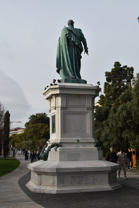 Monument commémoratif au maréchal Masséna, natif de Nice. Projet du sculpteur Carrier-Belleuse, lauréat du concours organisé en 1865. La statue est inaugurée le 15 août 1868. Le maréchal est accompagné d'une victoire écrivant son nom sur le piédestal et de bas-reliefs représentant les batailles de Zürich et de Genês.