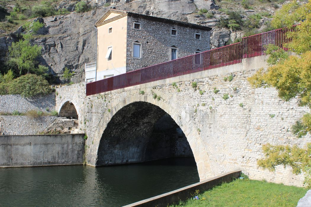 Ouvrage d'art vraisemblablement construit au début du 2e siècle après Jésus-Christ. Le pont franchit l'Ouvèze au point le plus étroit de son passage à travers le massif calcaire. Il est conservé dans sa quasi intégralité, et est encore en usage.