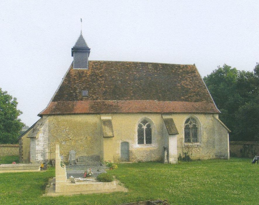 La paroisse appartenait, avant la Révolution, au diocèse de Sens. L'église date de la reconstruction du village, au 16e siècle, après la guerre de Cent ans, comme en témoignent le style flamboyant du remplage des baies, les vestiges des anciens vitraux, ainsi que le décor buticulé des entraits. L'édifice a sans doute toujours été couvert d'une charpente lambrissée, disposition fréquente dans les églises de l'Aube. La première travée a été refaite au 18e siècle (cloche datée de 1776). A l'intérieur, les murs conservent un décor peint du 16e, représentant les apôtres et les morts sortant de leur cercueil.