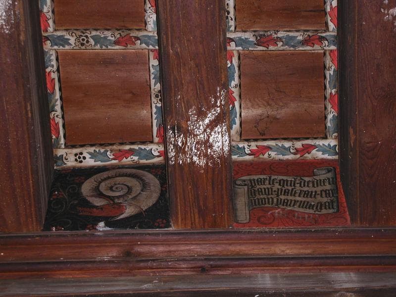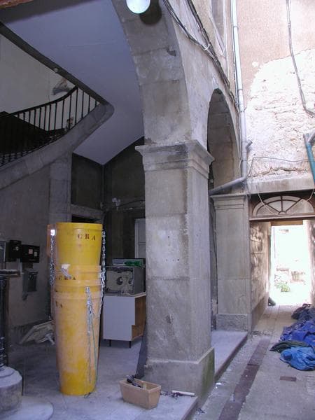 Immeuble correspondant à deux unités architecturales dont les façades présentent aujourd'hui un aspect des 18e et 19e siècles. A l'intérieur, deux plafonds des années 1451-1452, au rez-de-chaussée et au premier étage du corps de bâtiment entre cours. Le plafond du rez-de-chaussée a conservé son décor peint sur ais d'entrevous (bestiaire fantastique, scènes religieuses, scènes de la vie quotidienne, scènes galantes...). Le plafond de l'étage a été recouvert d'un badigeon gris-bleu laissant apparaître par endroit un décor peint.