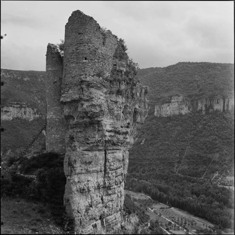 Le château de Peyrelade fut l'une des forteresses les plus importantes du Rouergue par sa situation stratégique (contrôle des gorges du Tarn). Il existait au 12e siècle. Il fut le théâtre de luttes et de sièges incessants jusqu'en 1633, où il fut démantelé. Ses ruines donnent une idée de ce que fut la forteresse : enceinte extérieure de plus de 250 mètres de long pour une hauteur de 10 mètres et une largeur de 2, 10 mètres. L'ensemble est dominé par le rocher-donjon de plus de 50 mètres de haut, accessible grâce à une tour ronde qui lui est adossée. Le château a conservé tous ses dispositifs défensifs du 15e siècle.