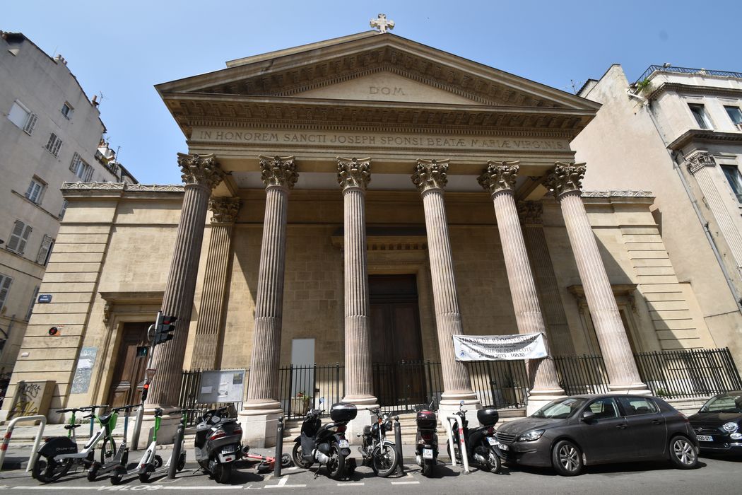 L'église Saint-Joseph, un des édifices les plus aboutis sur le plan du décor, est située dans les quartiers sud de Marseille. C'est l'une des 40 églises construites ou agrandies par Monseigneur de Mazenod après le rétablissement du diocèse en 1823. Plans de l'église commandés à Pascal Coste en 1833. Il s'agit d'une église de type basilical, dont la façade est terminée en 1864 par l'architecte Ferrié sur les dessins de Coste. En 1868, Henry Espérandieu reconstruit la tribune destinée à recevoir le grand orgue Cavaillé-Coll et réalise le plafond à caissons de la nef. Le maître-autel et le baldaquin sont l'oeuvre de Sainte-Marie-Perrin. Les peintures de la nef et des chapelles latérales ne sont achevées qu'en 1925.