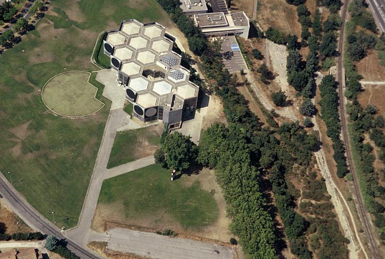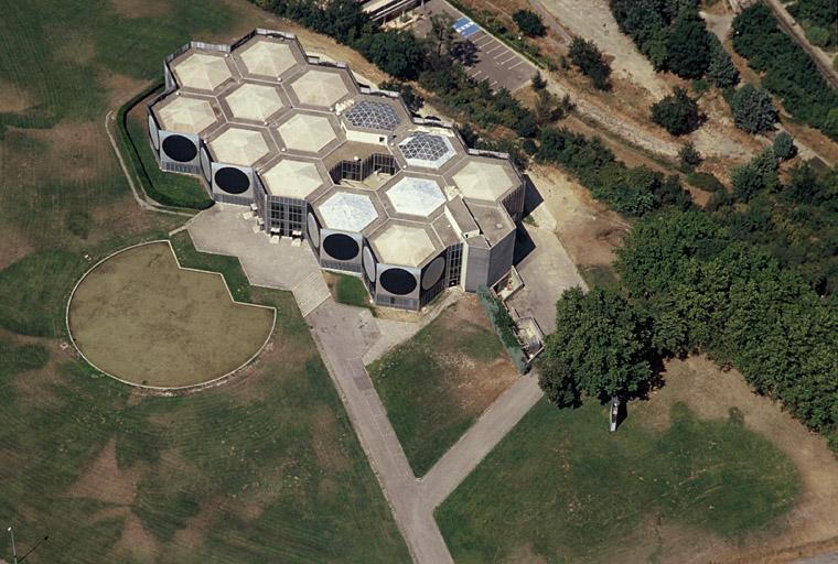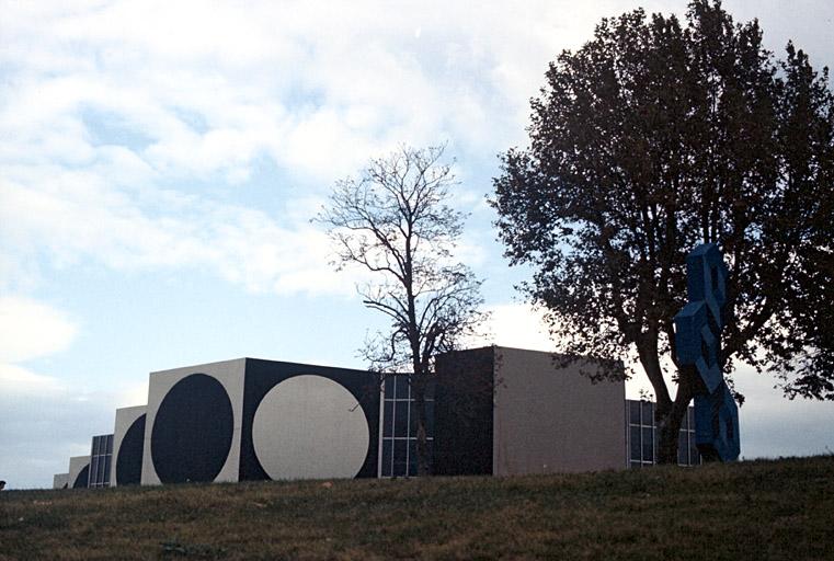 Hongrois d'origine, Victor Vasarely (1906-1997) , élabore à partir de 1966 le projet d'un centre architectonique rassemblant les deux parties de son oeuvre, l'une picturale (art optique) , l'autre théorique. La première est présentée dès 1970 dans le château de Gordes ; pour la seconde, un bâtiment conçu entièrement par Vasarely est construit par Jean Sonnier et son associé Dominique Ronsseray : il est inauguré en 1976. Une grande sculpture, en forme de V, signale le bâtiment, dont la façade aveugle se présente comme un pliage répétitif alternant des panneaux fond blanc - fond noir. La fondation est constituée de seize alvéoles hexagonales accolées ; il ne s'agit pas d'un musée, mais d'un centre artistique à plusieurs fonctions : exposition des "intégrations", but pédagogique, centre d'échanges sur la création contemporaine, ... L'édifice comporte une ossature en béton, habillée de panneaux d'aluminium ou de vitrages ; l'éclairage est assuré par des verrières zénithales.