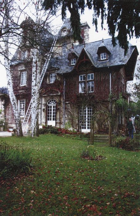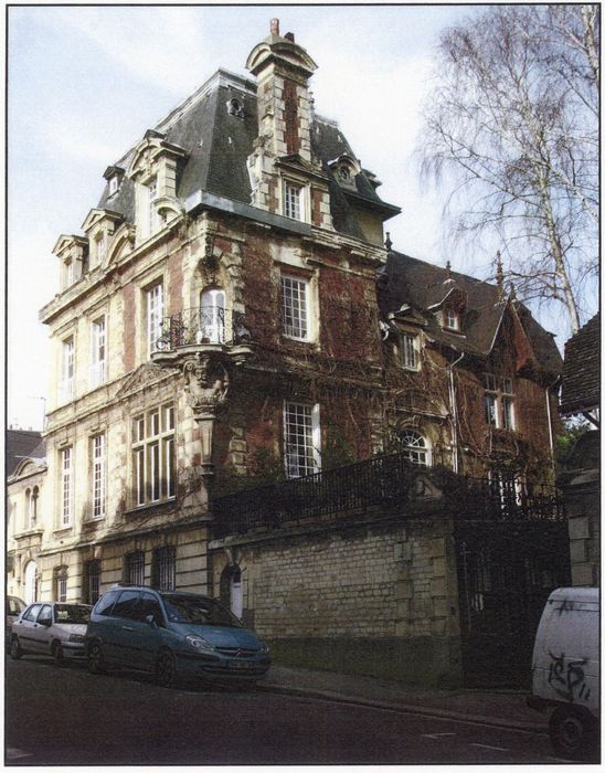 Demeure construite en 1885 pour et par l'architecte Jacques Baumier, le "créateur" du style néo-normand. Baumier y créé une oeuvre très éclectique, représentative du courant architectural fin de siècle. La silhouette générale accuse une dominante néo-Louis XIII avec l'emploi de la brique et de la pierre, les harpages, les grandes lucarnes, le toit en pavillon et les souches très verticales. L'influence de la Renaissance est lisible dans le dessin de la grande croisée de la façade sur rue. L'aile côté jardin rappelle davantage la facture régionaliste avec l'emploi du pan de bois. Le décor intérieur utilise la sculpture, la peinture murale, la quincaillerie et la menuiserie. Cette villa constitue l'un des meilleurs exemples de demeure urbaine caennaise de la fin du 19e siècle.