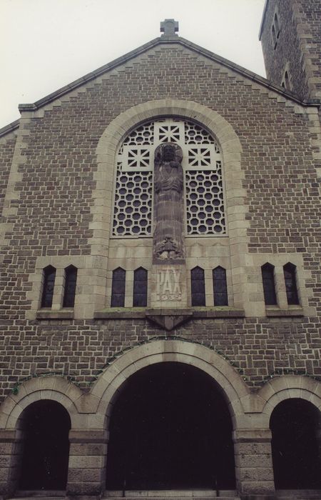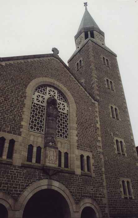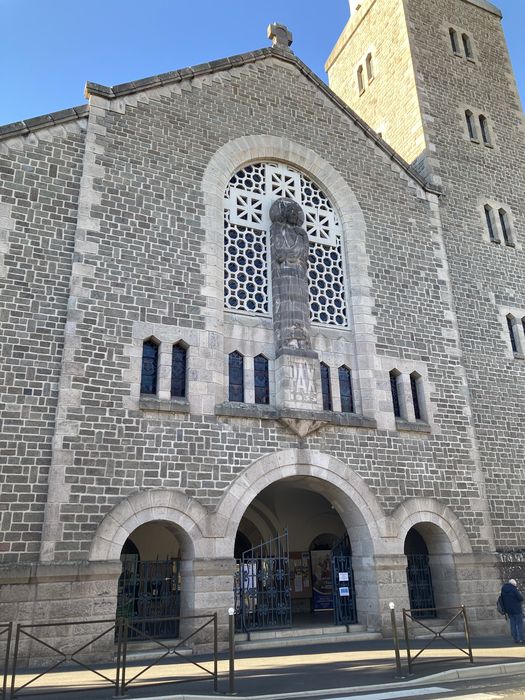 Eglise construite en 1937 selon le projet de l'architecte Pierre Croizet qui adopte un style néo-roman rationaliste. Plus particulièrement inspirée par le style périgourdin (voûte à coupole sur pendentif) , elle comprend une église basse surmontée d'une église haute à nef unique et large, couverte d'une coupole au niveau du faux transept. Le clocher carré est accolé à la façade sud, elle-même ornée d'une statue monumentale du Christ, réalisée par le sculpteur Georges Bigeard. Sa mise en uvre mêle matériaux traditionnels (granit, pierre de Murat) et techniques modernes (béton armé). Le programme décoratif s'ouvre à l'art moderne : vitraux figuratifs et abstraits de Marguerite Huré ; bas-reliefs du sculpteur C. Bouscau ; peintures et mosaïques des ateliers Mauméjean.