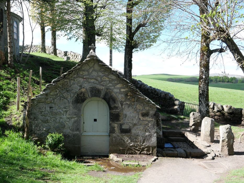 Le culte marial de la Font-Sainte est célébré depuis plusieurs siècles. La montagne de la Font-Sainte est mentionnée dès le début du XVIe siècle (« Montana de la Fon-Sainte », 1505, terrier d'Apchon). Vers 1740, l'apparition miraculeuse de la Vierge à une jeune femme, Marie Galvain, est à l'origine de la construction d'un édicule englobant la source et l'oratoire. Le linteau de la porte de l'oratoire porte d'ailleurs la mention de l'année 1744.