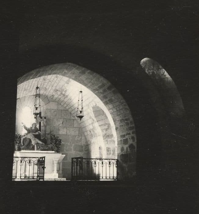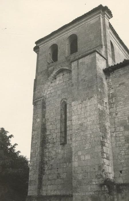 Edifice d'origine pré-romane (nef) comprenant un voûtement et une travée d'avant-choeur du 12e siècle. Extension vers l'ouest à la fin du Moyen-Age. Clocher construit sur le choeur, avec une voûte à quatre branches d'ogives et deux liernes chanfreinées, sans doute du 15e siècle, et restauré au 19e siècle. Une vaste crypte de plan rectangulaire, recouverte d'un berceau surbaissé et agrandie au 15e siècle, servait de lieu de sépulture aux seigneurs du Repaire.