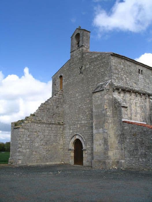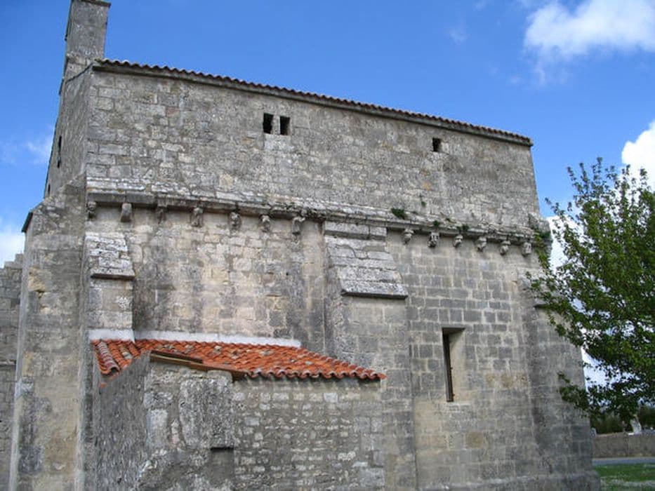 L'église serait implantée sur un ancien cimetière mérovingien et est mentionnée dans les textes dès 1098, donnée à l'abbaye royale de Saint-Jean-d'Angély qui est peut-être à l'origine de la construction de l'édifice roman actuel au 12e siècle. La partie ouest est détruite lors des guerres de Cent ans. Les travées orientales sont alors fermées, à l'ouest, par un mur aveugle qui sera muni d'une porte remployée lors de sa reconstruction au 19e siècle. L'édifice présente un plan rectangulaire, à deux travées. La façade ouest, reconstruite en 1868, est surmontée d'un clocher-mur et percée d'une porte avec archivolte romane à pointes de diamant. Au-dessus de la corniche à modillons règne un mur plus récent (15e-17e siècle) qui a permis de ménager une salle haute, peut-être utilisée comme refuge mais assurément comme pigeonnier. Le chevet plat est percé d'une grande baie gothique en arc brisé. L'intérieur est voûté d'un berceau appareillé dont le doubleau chanfreiné retombe sur des colonnes engagées à chapiteaux historiés. Les murs conservent quelques rares traces de peintures.