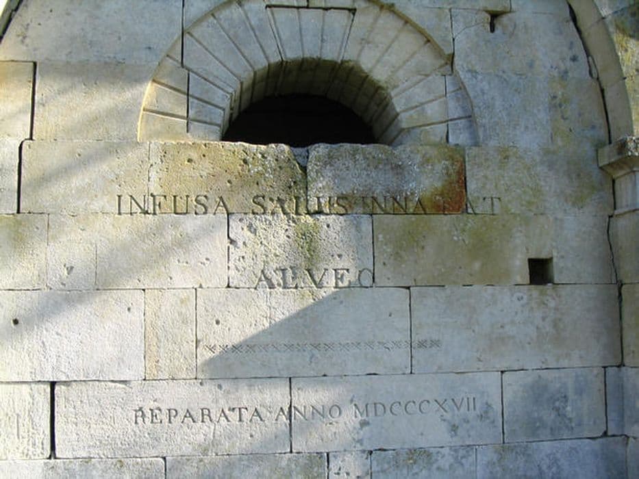 L'usage de ces eaux ferrugineuses remonte fort loin. Au 17e siècle, il y avait quatre sources d'eau ferrugineuse qui s'écoulaient dans un bassin découvert (l'eau était conduite par deux canaux parallèles). La réputation de ces eaux semble oubliée en 1793. Au début du 19e siècle, le nouveau propriétaire fait réparer les bassins et construire un pavillon de plan rectangulaire au-dessus, puis obtient l'autorisation d'exploiter la source en 1819 (une source d'eau claire, l'autre d'eau ferrugineuse). Présence de graffiti de bateaux.