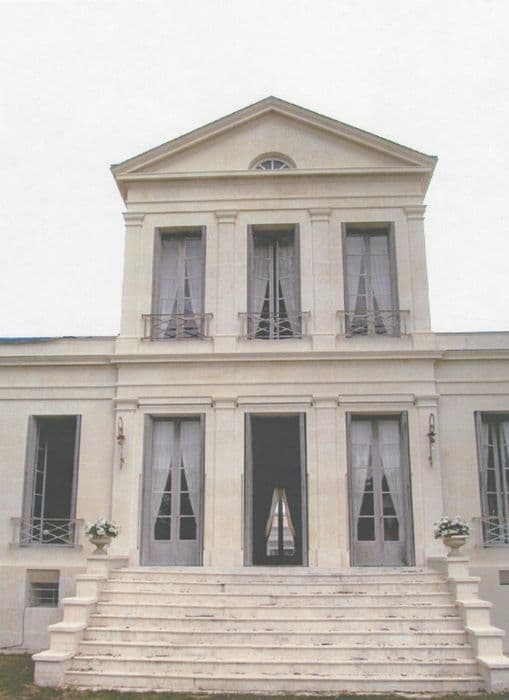 Construction du 19e siècle, de style néo-classique, entouré d'un parc assurant une perspective qui débutait au nord par une allée de chênes pour se poursuivre au sud depuis une trouée dans les arbres.