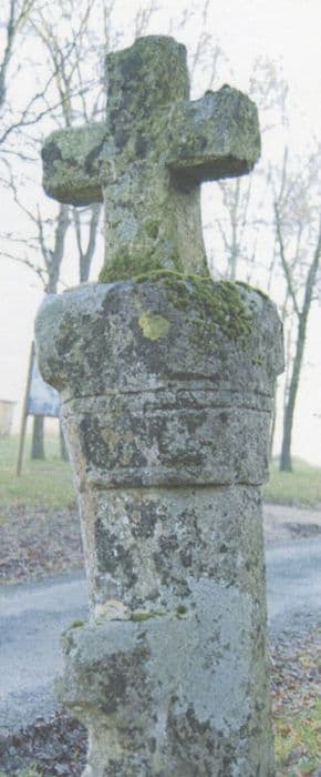 Au sud de l'église se trouve une croix en pierre, autrefois située à un carrefour. Elle présente un fort soubassement et un fût polygonaux, un chapiteau frustre surmonté de la croix trapue à arêtes abattues. Une protubérance sur le fût fait office de petit autel à offrande.