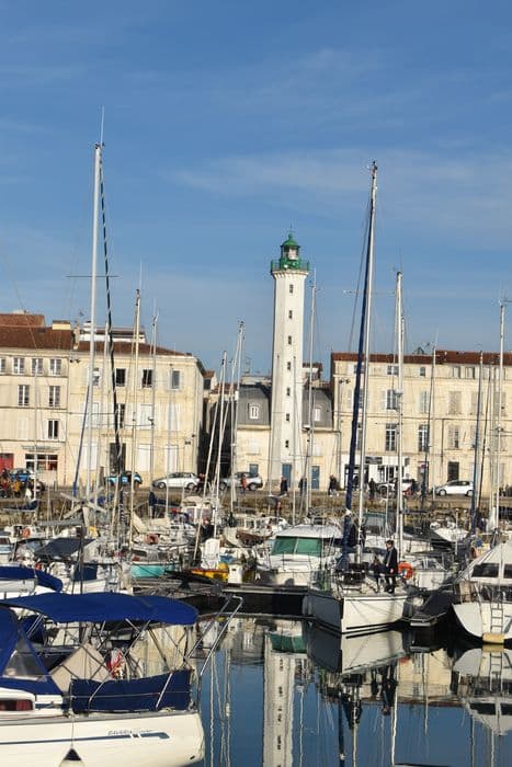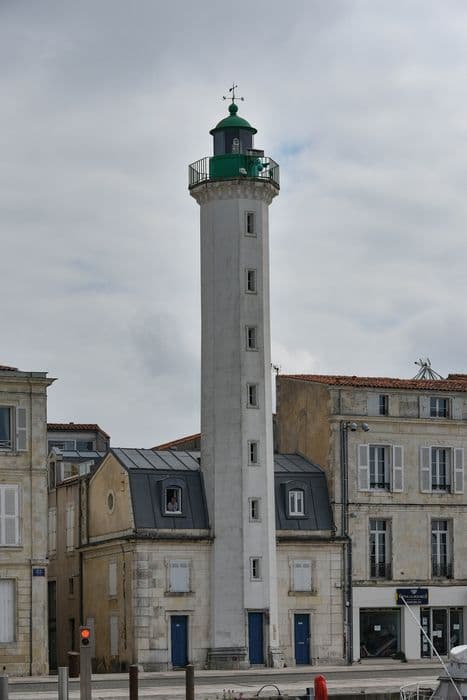 Depuis la construction de la tour de la Lanterne au 15e siècle, La Rochelle ne disposait que d'un seul fanal placé près de cette tour et signalant les rochers de Lavardin et de Chauveau. A la demande des pilotes du port, un projet concernant la construction de deux nouveaux feux à la tête de la jetée est évoqué à partir de 1842. Les premiers plans sont dressés en 1848. Les travaux se déroulent de 1850 à 1853. Deux phares d'alignement à 59° sont construits. Le phare postérieur, sur le quai Valin, abrite son allumage dans une tour octogonale peinte en blanc avec partie supérieure en vert, accolée à la face ouest d'une maison en maçonnerie à deux niveaux. D'une hauteur au-dessus de la mer de 23,30m, il possède une focale de 22,15m. Le feu antérieur est situé dans le port, à l'ouest de l'angle sud-ouest du bassin intérieur. La tourelle cylindrique est en maçonnerie sur soubassement. D'une taille de 14,10m au-dessus de la mer, il possède une portée de 12 milles.