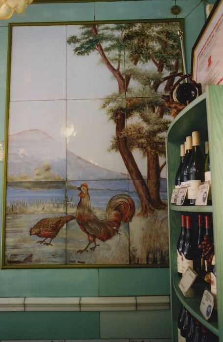 La charcuterie présente un décor de carreaux d'opaline peinte exécuté en 1907 par la famille Beyer, maîtres-verriers à Besançon. Les panneaux représentent des paysages et des animaux. Le plafond s'orne de branches de fleurs et d'oiseaux. Ce décor est quasiment unique en Bourgogne.