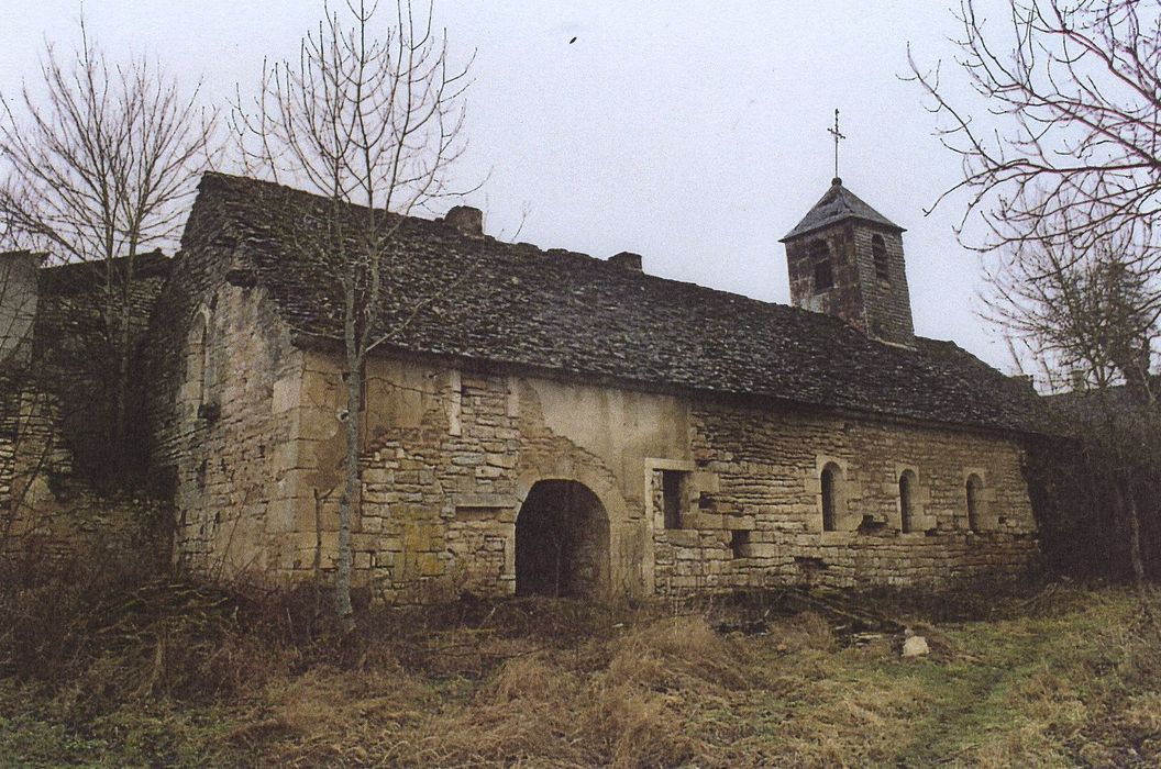 La grange est citée en 1201, 1217 et 1289. En 1466, elle est affermée. Une chapelle est installée au début du 17e siècle, dans un tiers de la grange, les habitants étant tenus de participer à son entretien. Le bâtiment présente un plan oblong. La salle intérieure est couverte d'une voûte en berceau plein cintre. Un toit de laves à deux versants couvre l'ensemble du bâtiment dominé, au niveau de la partie transformée en chapelle, par un beffroi de charpente. Un porche précède l'entrée de la chapelle. La porte est située sous un arc plein cintre et est surmontée de trois édicules à niche.