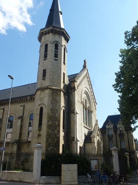 A l’exception du bâtiment des années 1950 situé entre le temple et le presbytère, les bâtiments liés au projet Félix Paumier, sis 14 boulevard de Brosses, soit le temple en totalité, les façades et toitures de la maison du gardien, de la sacristie et du presbytère, les grilles, les murs de clôture et le sol de la parcelle d’assise contenant les vestiges enfouis de l’ancien château de Dijon, situés sur la parcelle n°54, section EW, tels que délimité sur le plan annexé à l’arrêté : inscription par arrêté du 5 août 2020