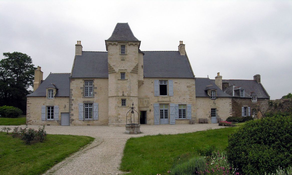 Le manoir est construit sur un promontoire rocheux dominant l'estuaire de la Rance, laissant supposer qu'il s'agit d'un ancien éperon barré. Le site atteste d'une occupation défensive ancienne, conservant une motte féodale à l'entrée du promontoire. Le corps de logis principal, de plan allongé, date de la seconde moitié du 16e siècle. La façade antérieure présente une tour d'escalier hors oeuvre polygonale puis carrée, ainsi qu'une ornementation Renaissance sculptée. Au 18e siècle, le logis est agrandi de deux petites ailes basses et intérieurement réorganisé. Une nouvelle chapelle est construite, des jardins en terrasse et une promenade sont aménagés. Plusieurs bâtiments de communs, dont certains du 19e siècle, sont conservés, ainsi qu'un ancien colombier.
