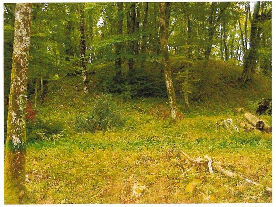 Cette imposante structure, à fonction probablement résidentielle comme suggéré par le matériel découvert, s'apparente à des édifices de type « motte castrale ». On peut remarquer les composantes morphologiques de ces constructions, à savoir une motte, une basse-cour et des fossés, au nombre de trois. La motte, circulaire, domine la basse-cour. Les trois fossés constituent, à l'est, un imposant dispositif fermant le site du côté du plateau. Des prospections ont livré des tessons de céramique et un abondant mobilier métallique. Des monnaies apportent quelques éléments de chronologie, essentiellement pour les 15ème et 16ème siècles. La date d'édification de ce vaste ensemble fortifié, vraisemblablement dès le 11ème siècle, n'est pas établie en l'absence de travaux exhaustifs.