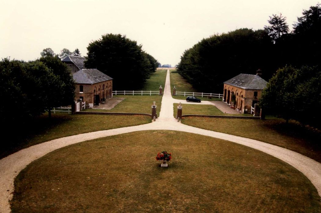 Ce château néo-classique a été bâti entre 1773 et 1789 par Jean-Baptiste Le Brument pour Louis Chef-d'Hostel, négociant rouennais, issu d'une famille originaire de Vatteville-en-Roumois, de religion protestante, qui dut s'exiler lors de la révocation de l'édit de Nantes. Une très importante série de plans originaux et les livres de comptes du commanditaire permettent de connaître avec une grande précision la chronologie de la construction, la provenance des matériaux et des intervenants des différents corps de métier. Outre le château, l'ensemble architectural comprend deux bâtiments de communs et le bâtiment de ferme (grange-pressoir) ainsi que divers aménagements de jardins. Les matériaux employés sont la pierre et la brique traditionnelles en Normandie. L'agencement intérieur d'origine est conservé, la cuisine et le lavoir étant les seules pièces réellement transformées. Les dallages ont disparu, les planchers subsistent en partie. Les décors sont intacts. La salle à manger comprend des panneaux en trompe-l'oeil à décor de paysage signés par Bouël. La ferronnerie est due à Frérot, et la décoration à Le Sueur Le Jeune.