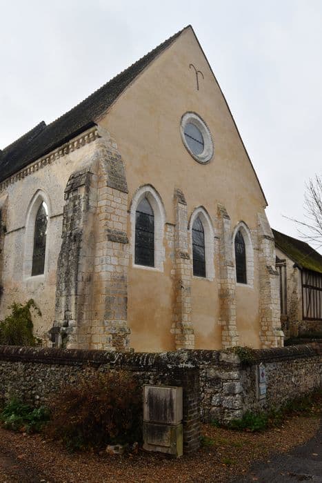 En 1128, Rahier de Muzy fonde sur ses terres un prieuré dédié à Notre-Dame. Encore active au 13e siècle, la communauté périclite au 14e. Le prieuré tombe en commende puis disparaît au 18e siècle. Seule subsiste l'ancienne église priorale. L'édifice est consolidé au cours du 19e siècle, puis endommagé en 1944. L'édifice présente un plan rectangulaire avec, au nord, le clocher est arasé en 1959. Construit en maçonnerie de calcaire et silex liés au mortier, l'édifice est percé de baies ogivales et épaulé par des contreforts plats. L'intérieur présente un volume unique à voûte lambrissée. En 1963, des peintures murales sont découvertes dans la nef, attribuables au 14e siècle.