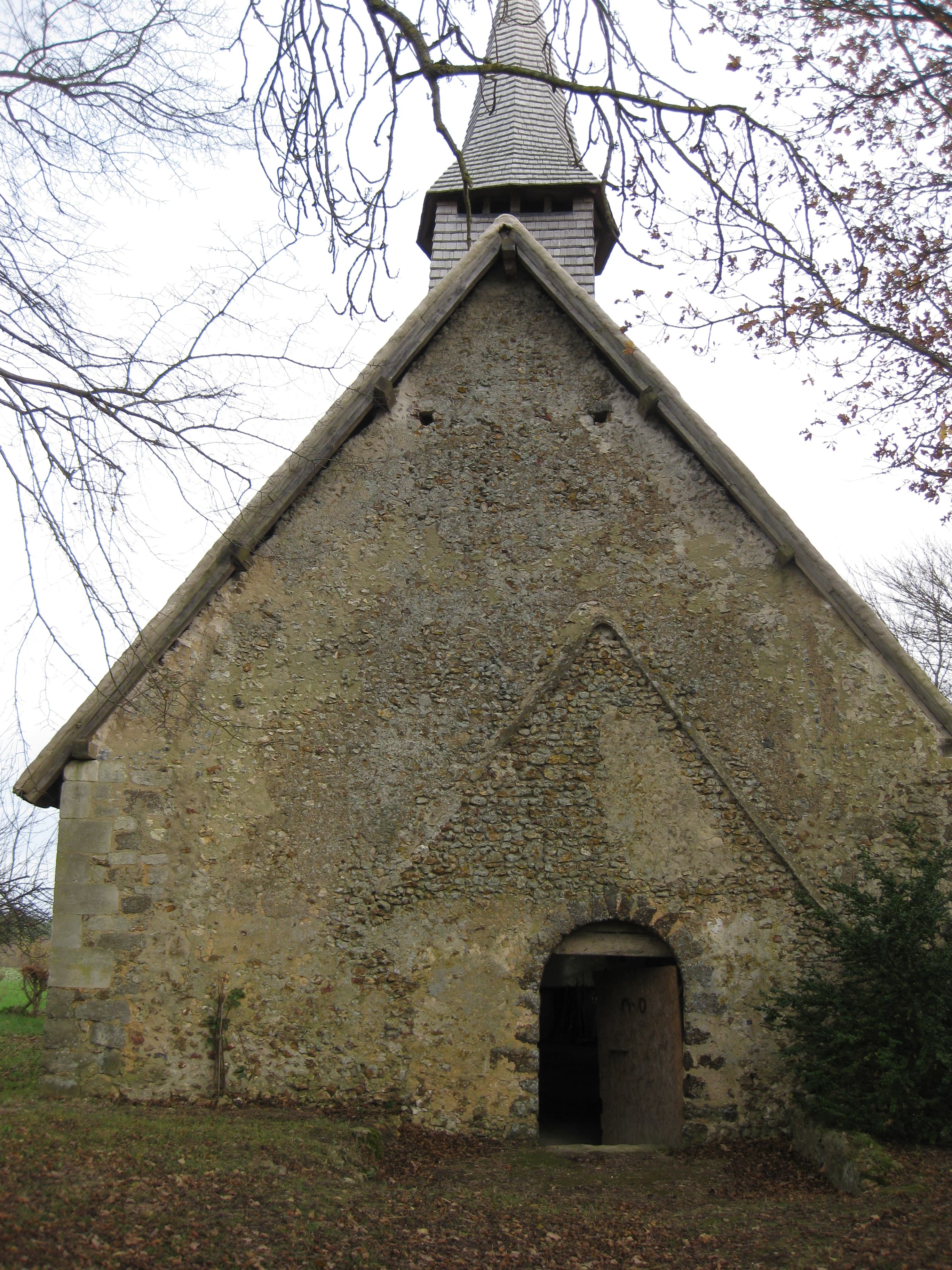 L'église est orientée Est-Ouest. Elle présente un plan rectangulaire formé par une nef unique que poursuit un chœur au chevet plat plus étroit. Un clocher prend place au-dessus de la première travée de la nef. Les murs Nord et Sud sont construits en moellons de silex pris dans un mortier à la chaux. Ils sont disposés en opus spicatum. Des chainages d'angle en pierre calcaire ou de grison raidissent les angles de l'édifice. Les encadrements des baies sont également en pierre calcaire ou en grison. Les toitures à deux pans sont couvertes en tuiles. La charpente lambrissée repose sur des poteaux intérieurs. Elle est de structure mixte, des chevrons formant fermes supportent la couverture, tandis que des fermes et pannes supportent le lambris. Cette charpente est peinte. De même le mur Est du chœur est orné d'une peinture représentant un dais de tissus encadrant à l'origine un retable sculpté déposé.
