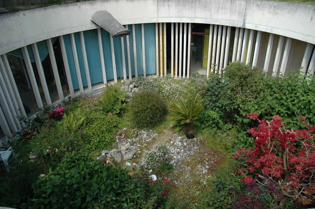 La maison Quéré a été construite de 1969 à 1973 sur un projet de Le Flanchec. Elle est un excellent témoin des facultés inventives de l'architecte et de son souci permanent d'adapter l'architecture au milieu local. Le plan de forme circulaire et le profil conique naissent de l'exigence de défendre l'édifice des vents violents qui battent la côte sur laquelle elle se dresse : le profil des parois, avec ses nervures créées par la succession de pilastres incurvés, permet de canaliser les flux d'air. La distribution intérieure reflète le parti extérieur : autour d'une cour ronde centrale, les différentes pièces se succèdent dans une structure en anneau. Le quart de la surface est occupé par le séjour, seule pièce dont la décoration a été achevée par Le Flanchec.