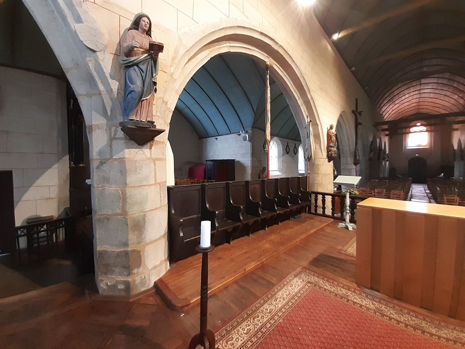 L'église en totalité et son enclos, à savoir ses deux calvaires, ses murs de clôture ouverts de cinq échaliers et son terrain d'assiette (cad. C 40, 41) : classement par arrêté du 14 décembre 2010